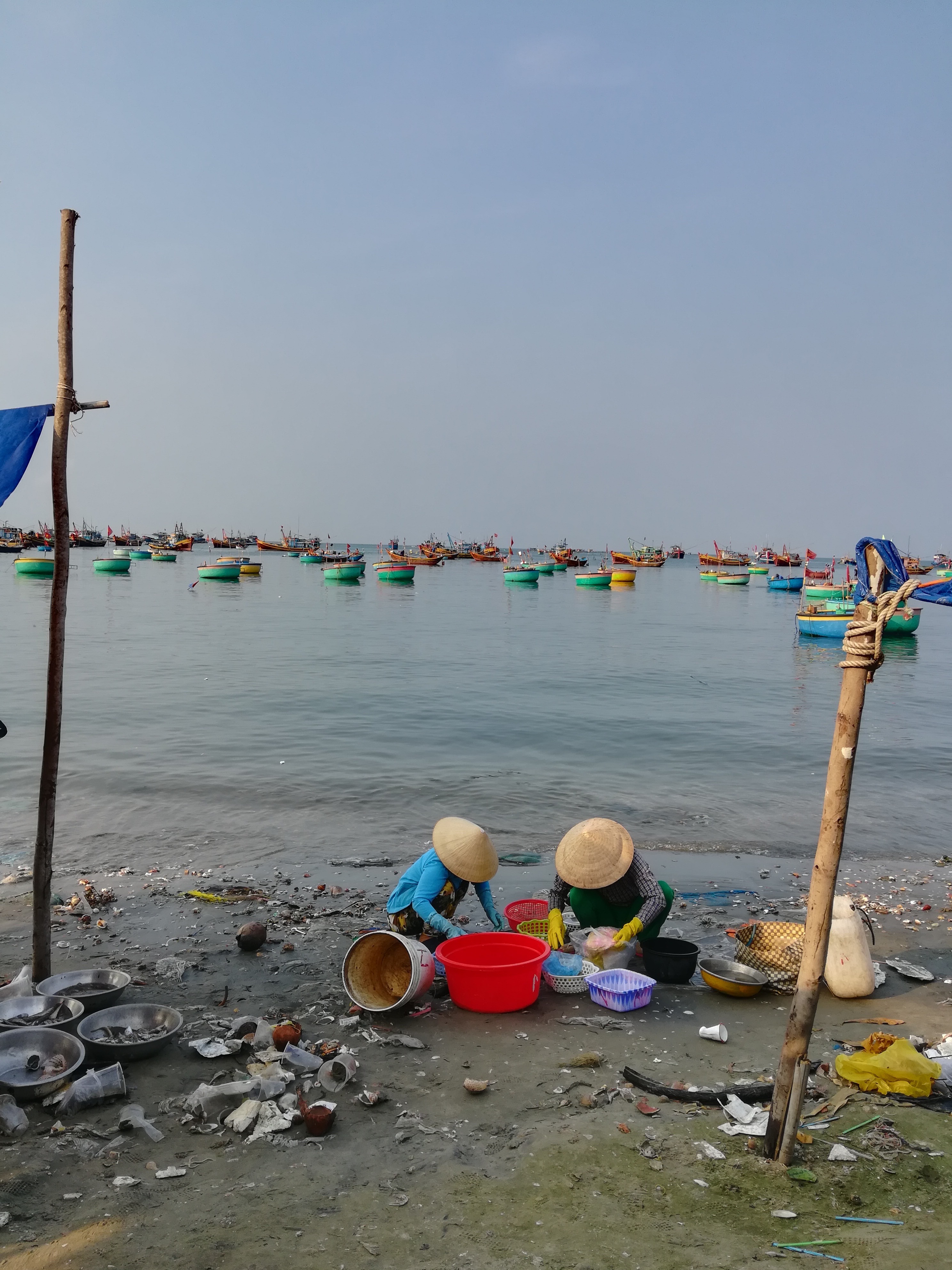 After you have admired the sunrise over the dunes, when the heat is still supportable, make your way to the Fishing village to observe the fishermen returning from the sea with their catches. The fish and shellfish caught are quite impressive, and seeing the locals preparing the market is very interesting. But you will see a not so nice other aspect which is the amount of garbage on the beach. Many countries still do not have proper waste recycling systems and unfortunately it impacts the fauna and flora.